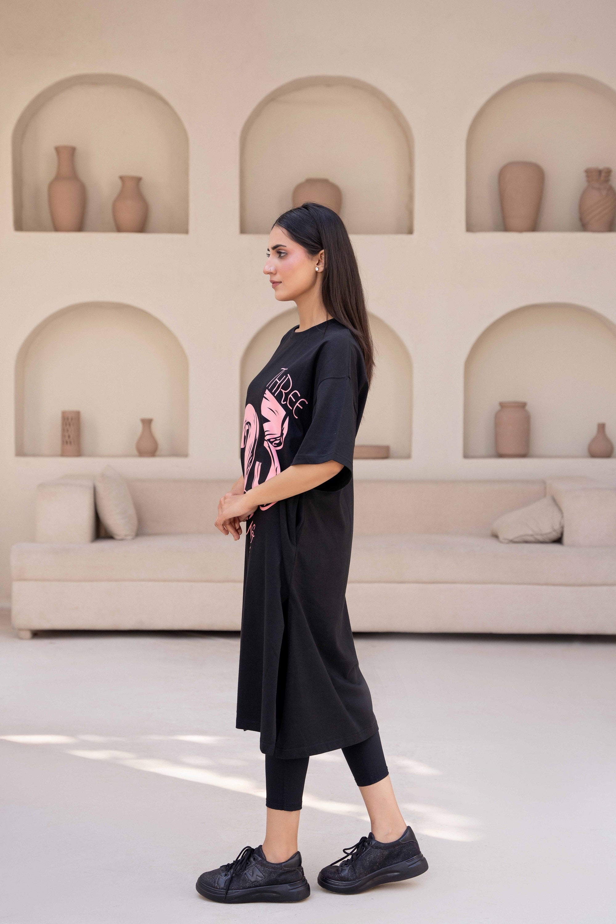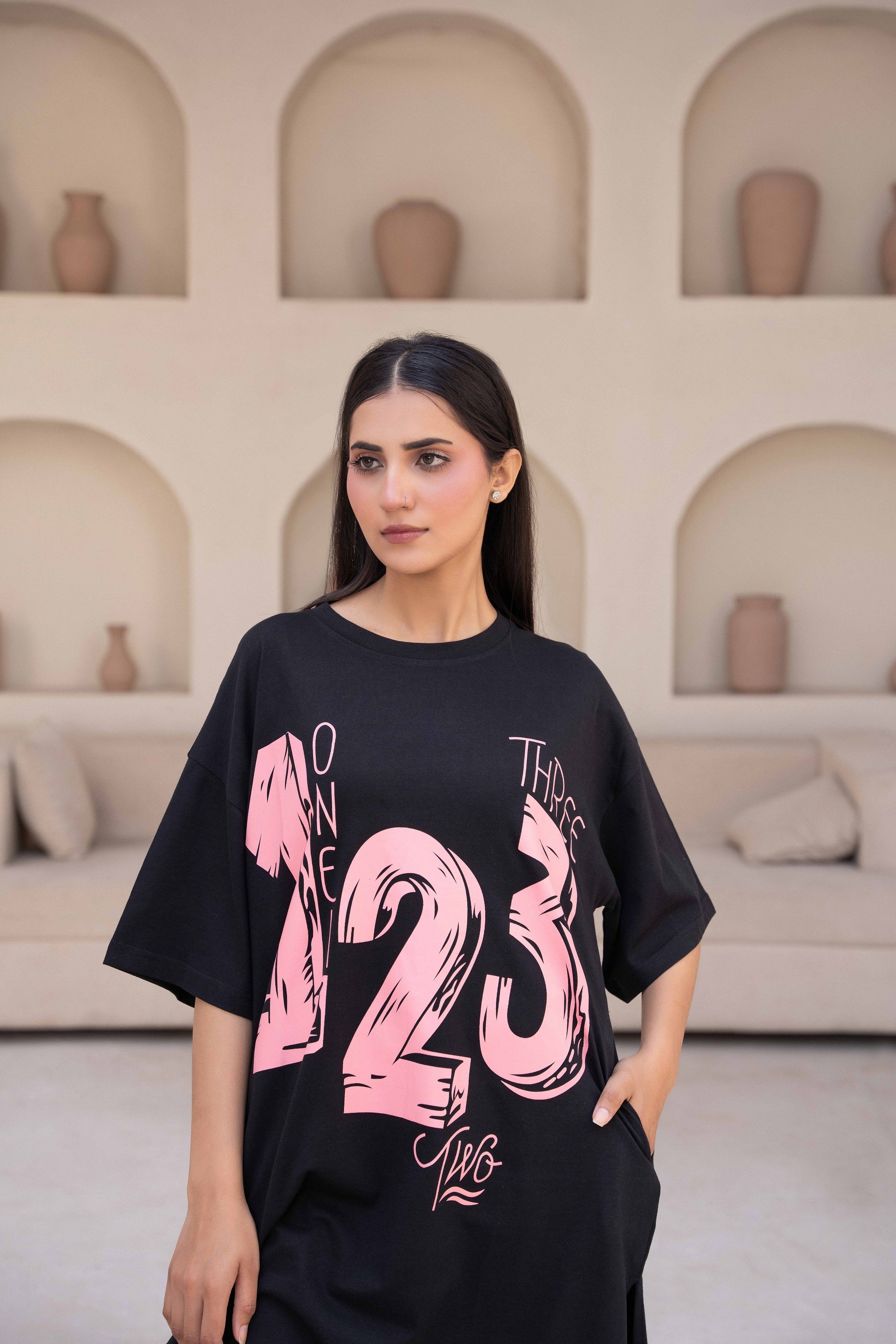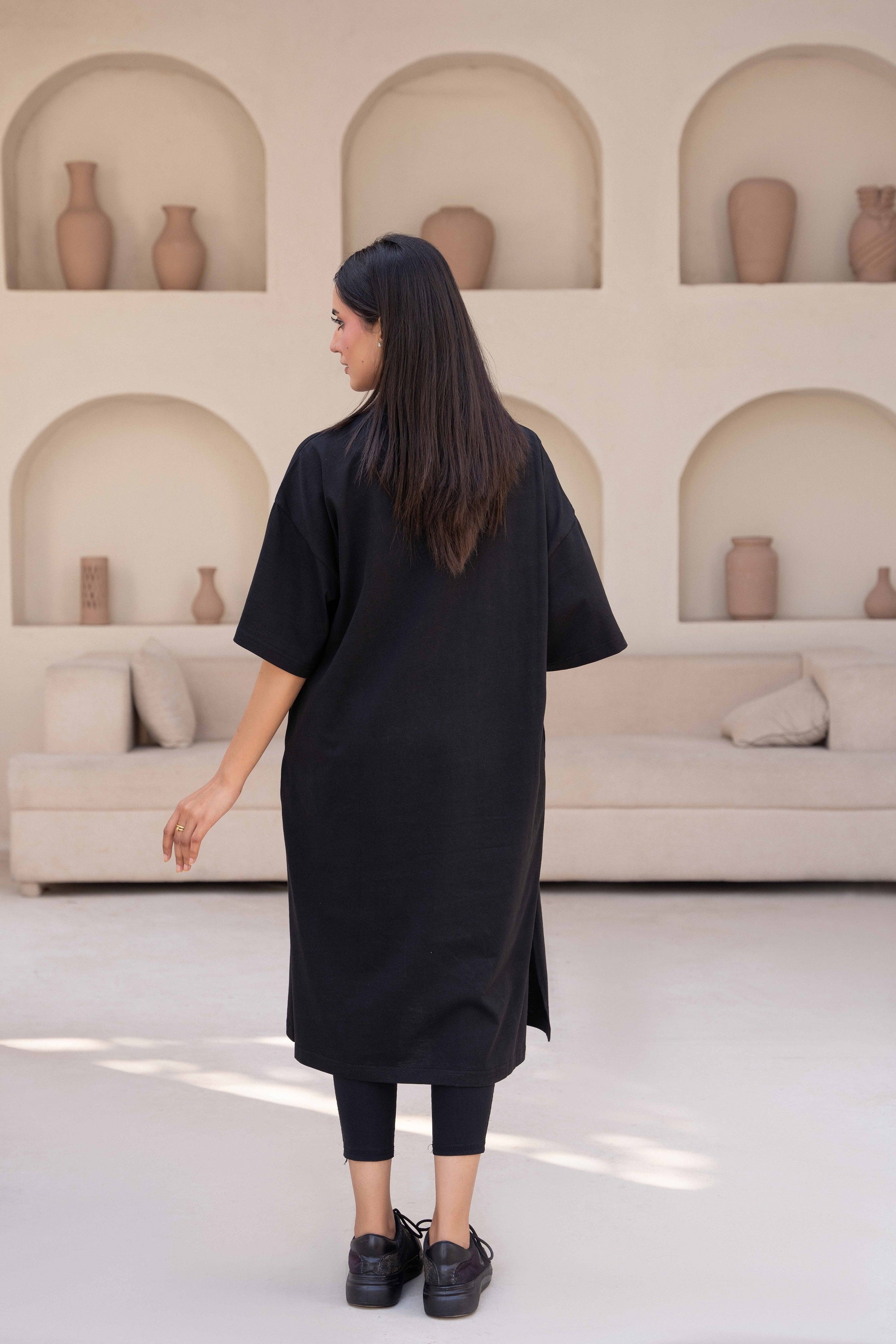 Boat Neck- Drop Shoulder- quarter Sleeves - Side 2 pockets